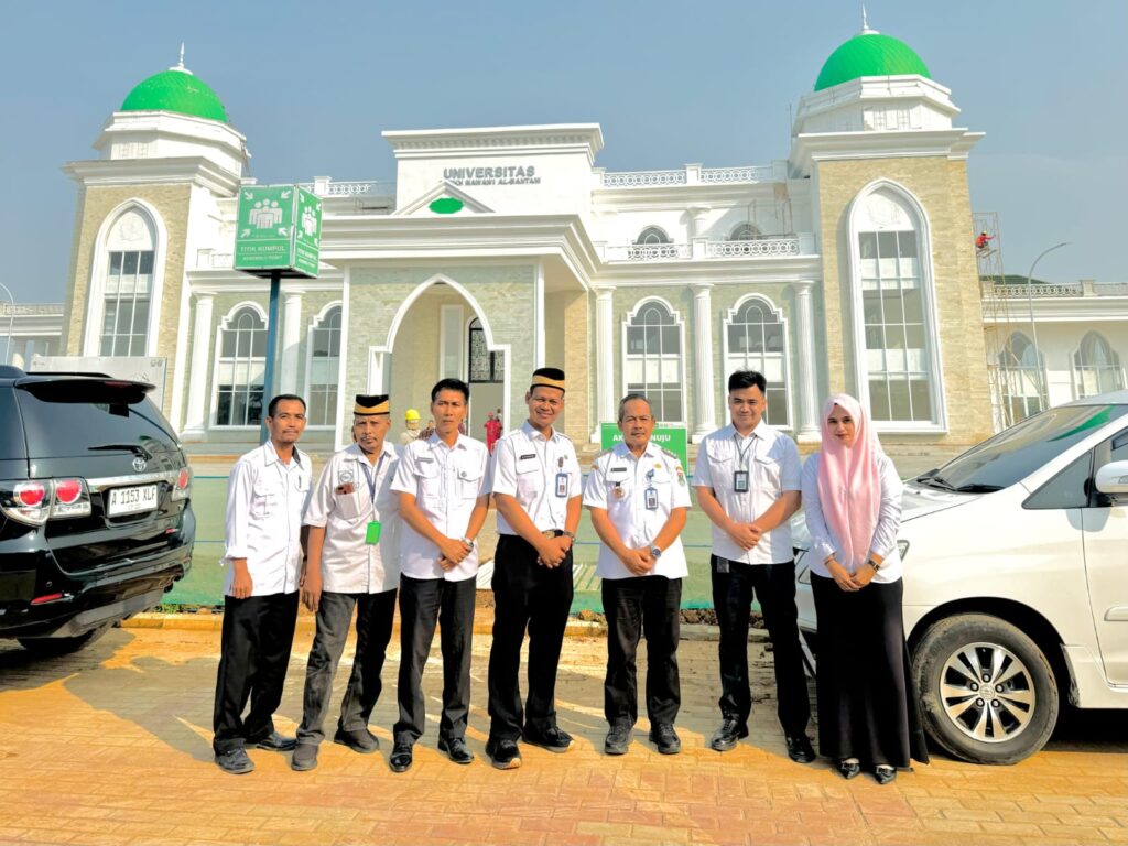 Camat Mekar Baru H. Iman Bahlawi bersama Sekcam Nurhadi dan jajaran kecamatan meninjau pembangunan Universitas Syeikh Nawawi Al-Bantani di Desa Jenggot, Rabu (8/10/2025).